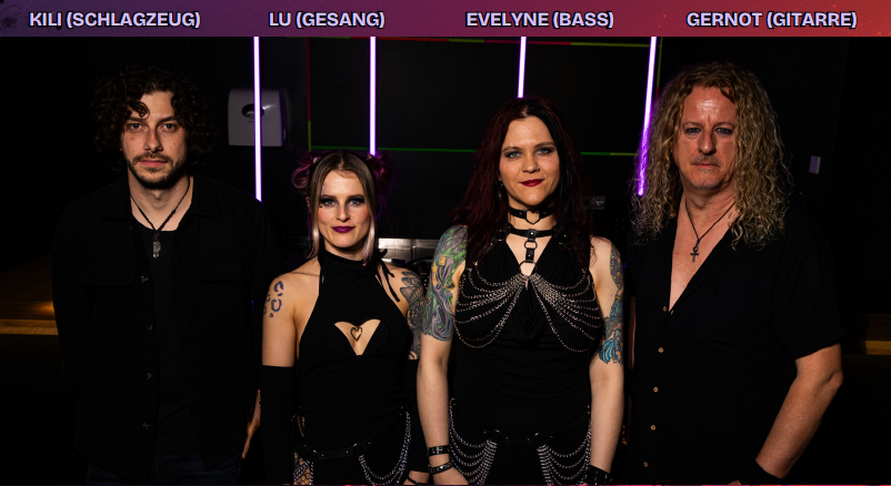 zugleich für den Mix verantwortlich ist, sowie Evelyne am Bass, deren druckvolles Bassspiel und